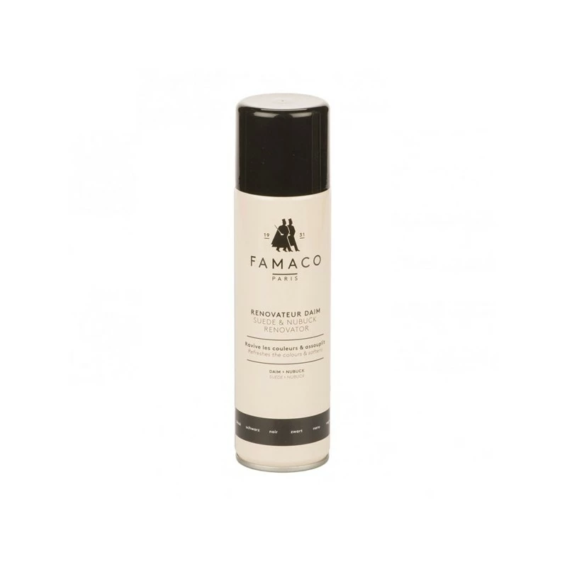 Redonne de la couleur à vos chaussures en nubuck et croûte de cuir par simple vaporisation du rénovateur daim FAMACO.