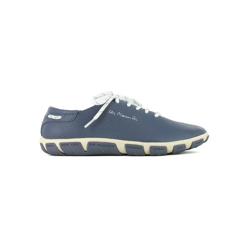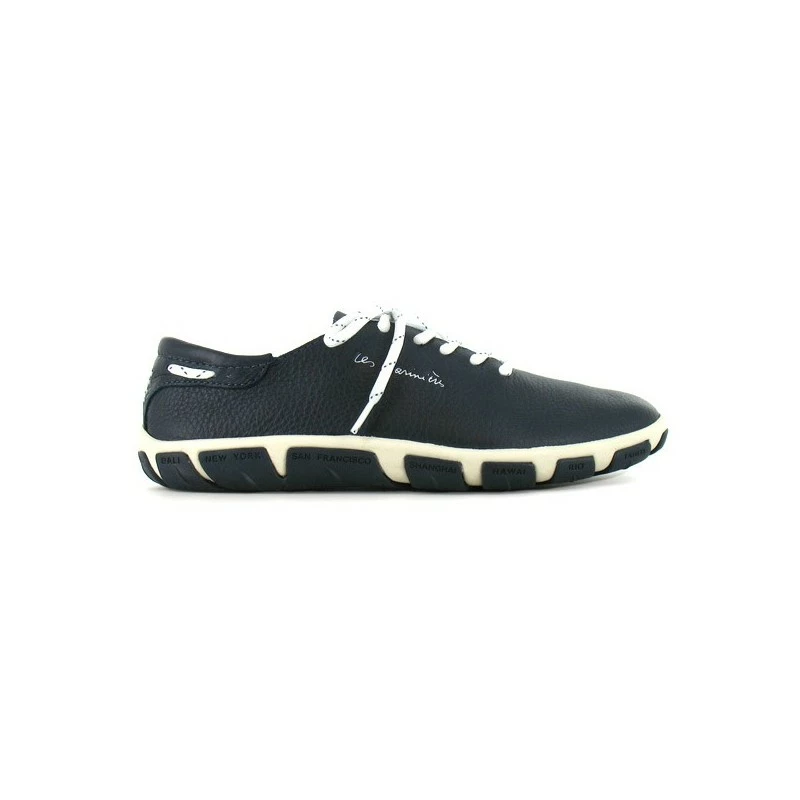 Par le biais de sa semelle, cette chaussure à lacet de la marque TBS, spécialiste des modèles bateau, vous fait voyager aux quatre coins du monde ! En effet, des destinations aussi exotiques que Fidji, Nouméa, Hawai ou Rio sont inscrites sur la semelle en caoutchouc. Un splendide cuir vient compléter l’ensemble quant au dessus du modèle. Irrésistible !